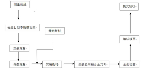 (注意:根據設計圖紙的相關要求及施工現場實際情況,先安裝出數米龍骨試驗段,掌握規律后再進行大片安裝)