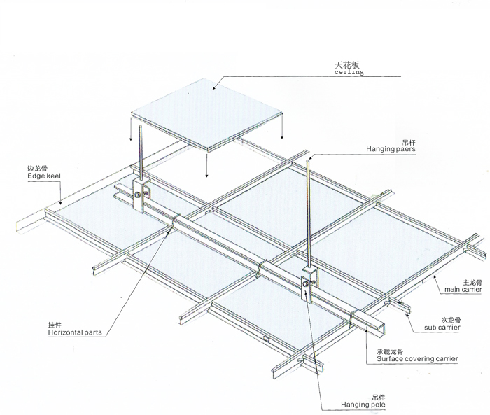 2.⑶.輕鋼主、次龍骨及配件可以拼裝成多種組合龍骨系列。