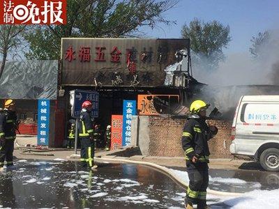【北京建材市場大火】今天中午,北京建材市場大火,位于朝陽區高安屯垃圾場北側的永福五金建材市場突發大火,記者在現場看到火勢較大,且冒著濃濃黑煙,消防人員正在緊急救援。進一步情況,記者將帶來持續報道。